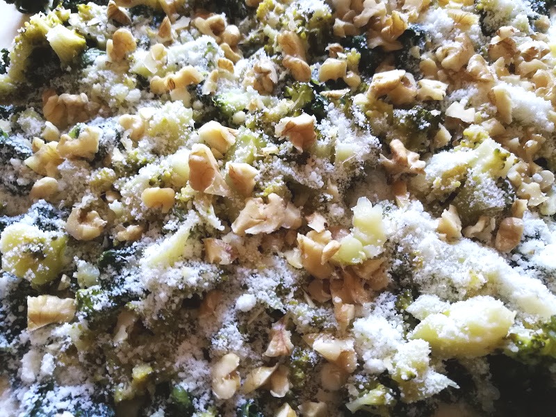 Cospargere con pecorino o parmigiano e con i gherigli di noci tritati…
