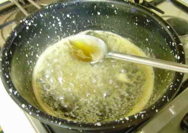 Mettere in una pentola capiente il miele, lo zucchero e l’acqua e far cuocere questo sciroppo finché non diventa biondo-oro; a questo punto spegnere il fuoco e buttare nella pentola gli struffoli, mescolare bene con un cucchiaio di legno.