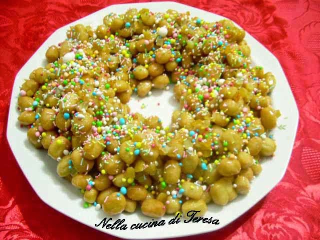 Gli Struffoli sono dei dolcetti principi nella tradizione campana del Natale, non c’è tavola della Campania imbandita per il Natale dove non ci siano gli Struffoli. Gli Struffoli sono delle palline di pasta fritte passate nel miele e decorate con confettini colorati e frutta candita. Piacciono a tutti, non si sbaglia mai nel servirli, si possono preparare con largo anticipo,