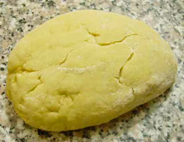 lavorare la pasta partendo dal centro e assorbendo man mano tutta la farina. Lavorare l’impasto fin quando lavorandolo non si appiccicherà alle mani.