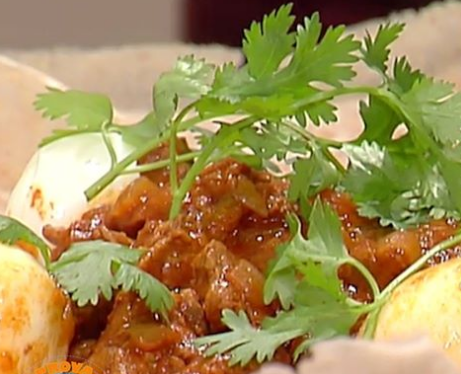 Fate riscaldare l’olio e aggiungete i due tipi di carne tagliati a spezzatino. Unire alla carne il cumino in polvere, la curcuma, il concentrato di pomodoro, la cipolla tritata, i pomodori maturi sminuzzati. Fate andare per circa un’ora a fuoco lento, mescolando di tanto in tanto, quindi aggiungete la miscela di Berberé e il burro chiarificato, che avrete sciolto nel frattempo. Aggiungete l’aglio tritato, proseguite la cottura per altri 5 minuti, mescolate bene e servite decorando con le uova sode tagliate a metà e foglioline di coriandolo fresco.