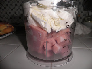 Frullate gli ingredienti in un mixer ad eccezione dei pistacchi.