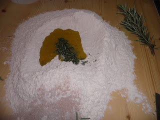 Impastate su una spianatoia: il rosmarino va sminuzzato finemente a coltello.