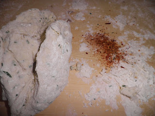 L’impasto dovrà essere abbastanza sodo ed elastico: se volete che il peperoncino rimanga in superficie, aggiungetelo alla fine.