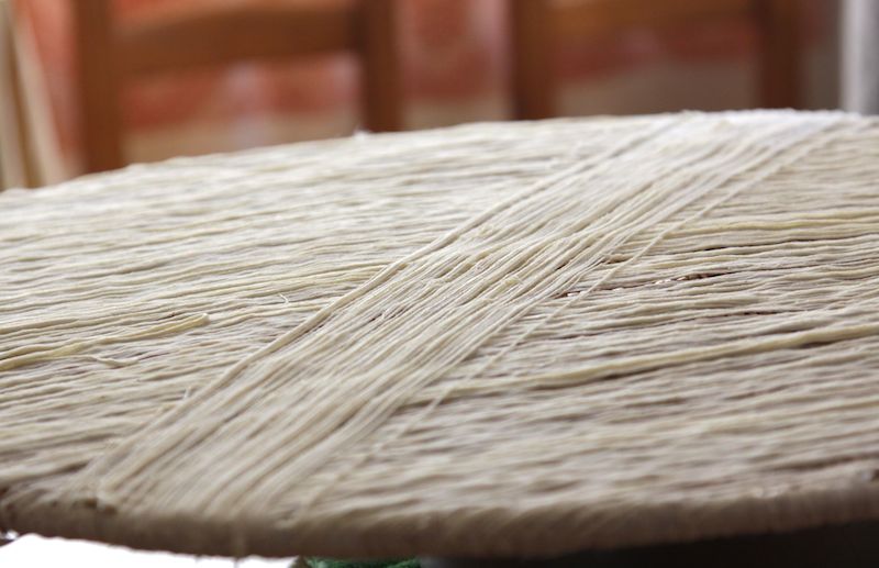 Insieme a lei e alle altre compagne di viaggio ci siamo messe al lavoro e miracolosamente i fili sono venuti anche a noi. Ma il problema non è tanto nel realizzare questi sottilissimi filamenti, quanto l’impasto che permette la loro realizzazione. E’ a base di semola, acqua e sale, ma il segreto è racchiuso tutto nella preparazione dello stesso: ne sono sicura!