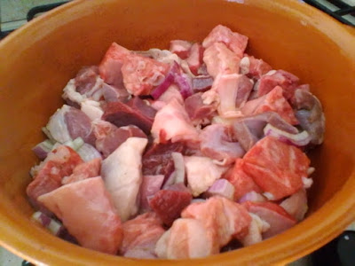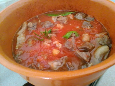 In una pentola di terracotta versate l’olio e appena è caldo unitevi i pezzetti di carne insieme alla cipolla e all’aglio. Fate rosolare e quando il liquido è assorbito aggiungete il vino e fate evaporare. Infine versate la polpa di pomodoro, l’alloro, il rosmarino, il peperoncino e un bicchiere d’acqua. Salate e lasciate cuocere per qualche ora a fuoco dolce. A fine cottura la carne dovrà essere ben cotta e il sugo non dovrà essere troppo denso.