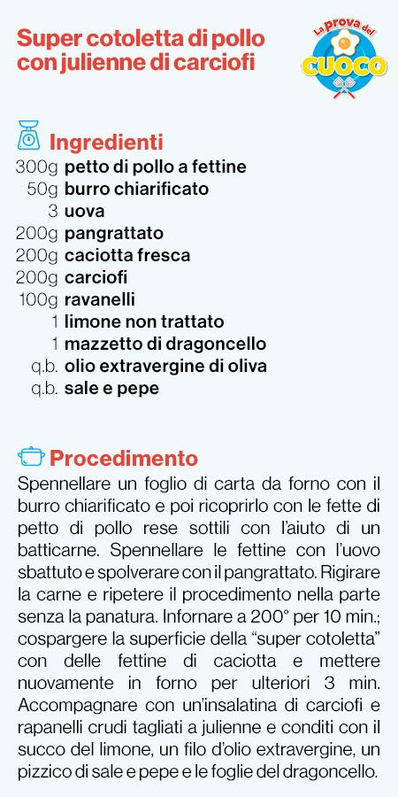Super cotoletta di pollo con julienne di carciofi da La Prova del Cuoco