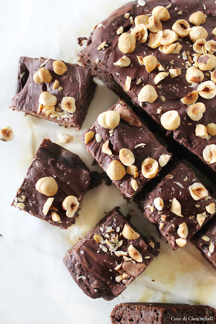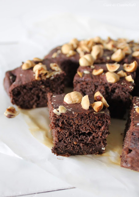 Una volta che la torta sarà fredda sciogliere circa 100 g di cioccolato fondente, cospargerlo sulla superficie della torta e aggiungere nocciole tritate grossolanamente. Ovviamente questo passaggio è facoltativo, ma vi giuro che ne vale la pena! Semplice da preparare, veloce nell’esecuzione e davvero buona e salutare. Non vi rimane che prepararla e dirmi cosa ne pensate!!!