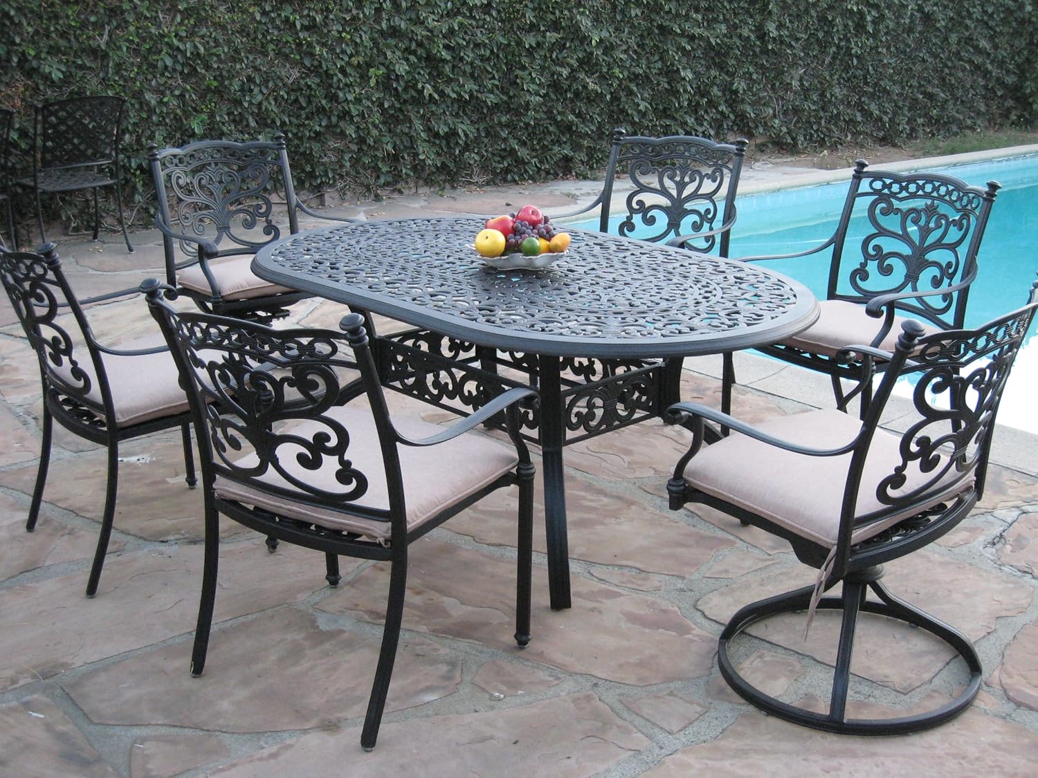 Details About Outdoor Patio Furniture 7 Piece Aluminum Dining Set With 2 Swivel Rockers Cbm