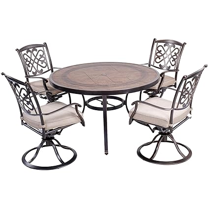 Hanover Traditions5pcsw Su Traditions Outdoor Patio Dining Set 5 Pieces 4 Swivel Rockers 48 Round Table And Umbrella