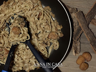 Si tratta di tagliatelle preparate con una parte di farina di castagne e condite con funghi.