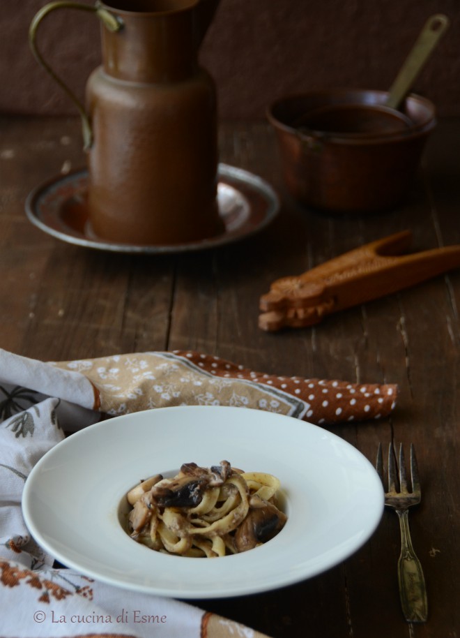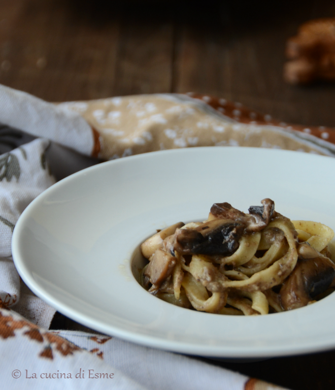 Con l’arrivo dell’autunno anche sulla nostra tavola i sapori ed i colori cambiano e nuovi ingredienti arricchiscono la dispensa, è tempo di zucca, ma è anche tempo di funghi. Nati nel sottobosco grazie all’oscurità e all’umidità, sono perfetti per paste e risotti, secondi e contorni. Frutti spontanei della terra che regalano un sapore speciale alle nostre pietanze. Queste tagliatelle cremose ai funghi ne sono un esempio, un primo piatto che amo particolarmente, estremamente semplice da preparare, ma con una cremosità ed un gusto davvero irresistibile. Le versioni per preparare le tagliatelle ai funghi sono, ovviamente, tantissime. C’è chi predilige i funghi freschi, chi i funghi secchi, perché regalano alla pietanza un profumo ed un sapore più intensi. C’è chi le ama solo con i porcini e chi invece preferisce i misti di bosco con porcini, cantarelli, ovoli, piopparelli ecc. E poi ci sono io, che amo condire le tagliatelle con un misto di prataioli e porcini, sia freschi che secchi. Un piccolo consiglio per il momento dell’acquisto. I funghi per essere saporiti devono essere di qualità e freschissimi. Quindi il cappello deve essere duro e sodo al tatto, il porcino dovrà essere di un bel marrone scuro, mentre il prataiolo di un colore bianco pieno. La calotta superiore deve risultare fissata saldamente sul gambo che dovrà anch’esso risultare ben sodo e mai molliccio.