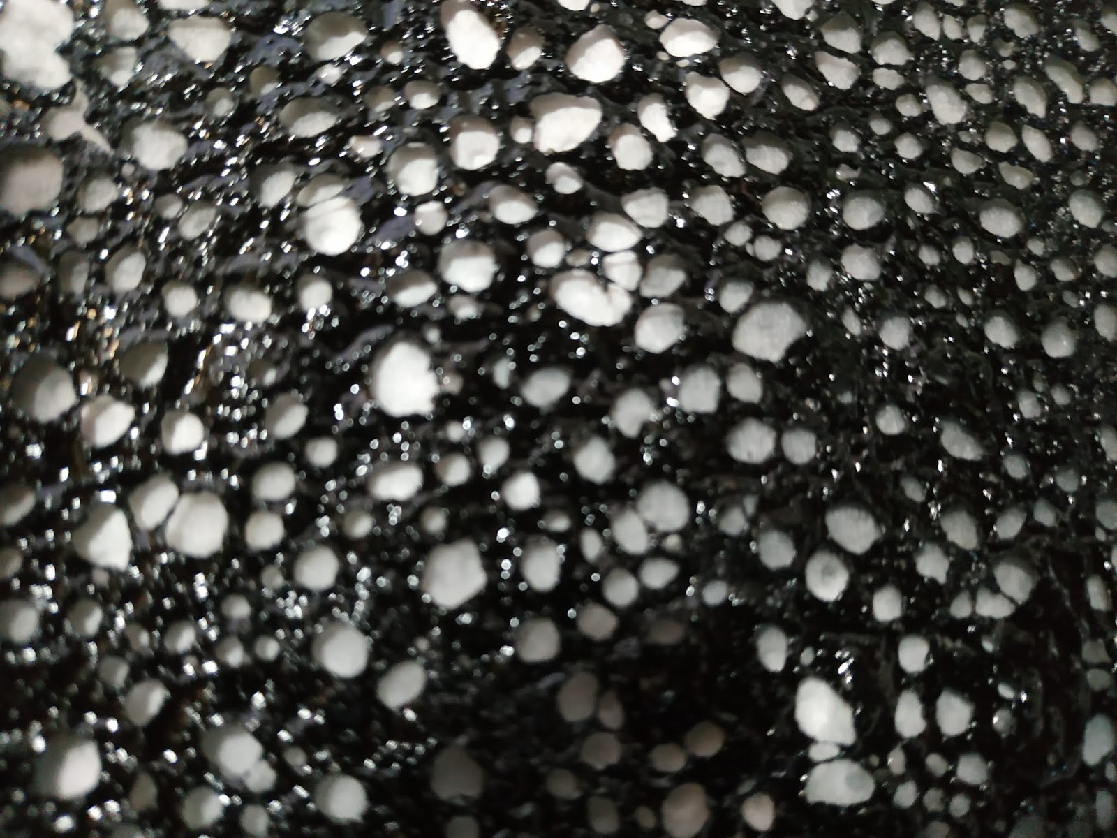 Per la decorazione ho pensato a sfoglie di corallo al nero di seppia; mi piace molto come preparazione ed è divertente prepararle. E’ una sorta di cialda croccante, molto elegante, che sembra quasi un merletto. Per il corallo al nero ci serviranno: 140 g di acqua, 50 g di olio extravergine d’oliva, 15 g di farina di riso, 10 g di nero di seppia . Mettete tutto in un bicchiere e frullate bene con un mixer ad immersione fino a quando avrete un composto bello spumoso ed emulsionato.