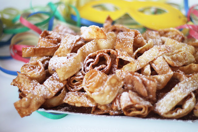 Fate dorare da entrambe le parti, quindi ponete su carta assorbente a scolare e spolverate con zucchero a velo. Felice Carnevale!