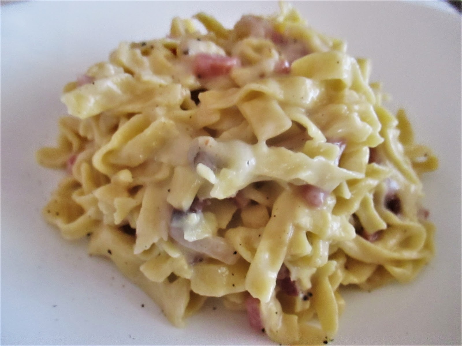 Un piatto della tradizione romana con una piccola aggiunta di tagliolini fatti in casa con farina di farro e del saporitissimo speck per arricchirne ulteriormente il già goloso gusto.