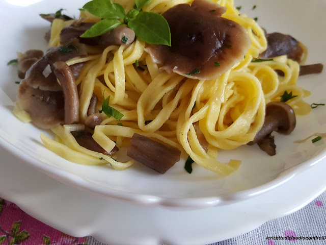 - Scolare, aggiungere nella padella con i funghi, insaporire per 1 minuto, portare in tavola e servire.