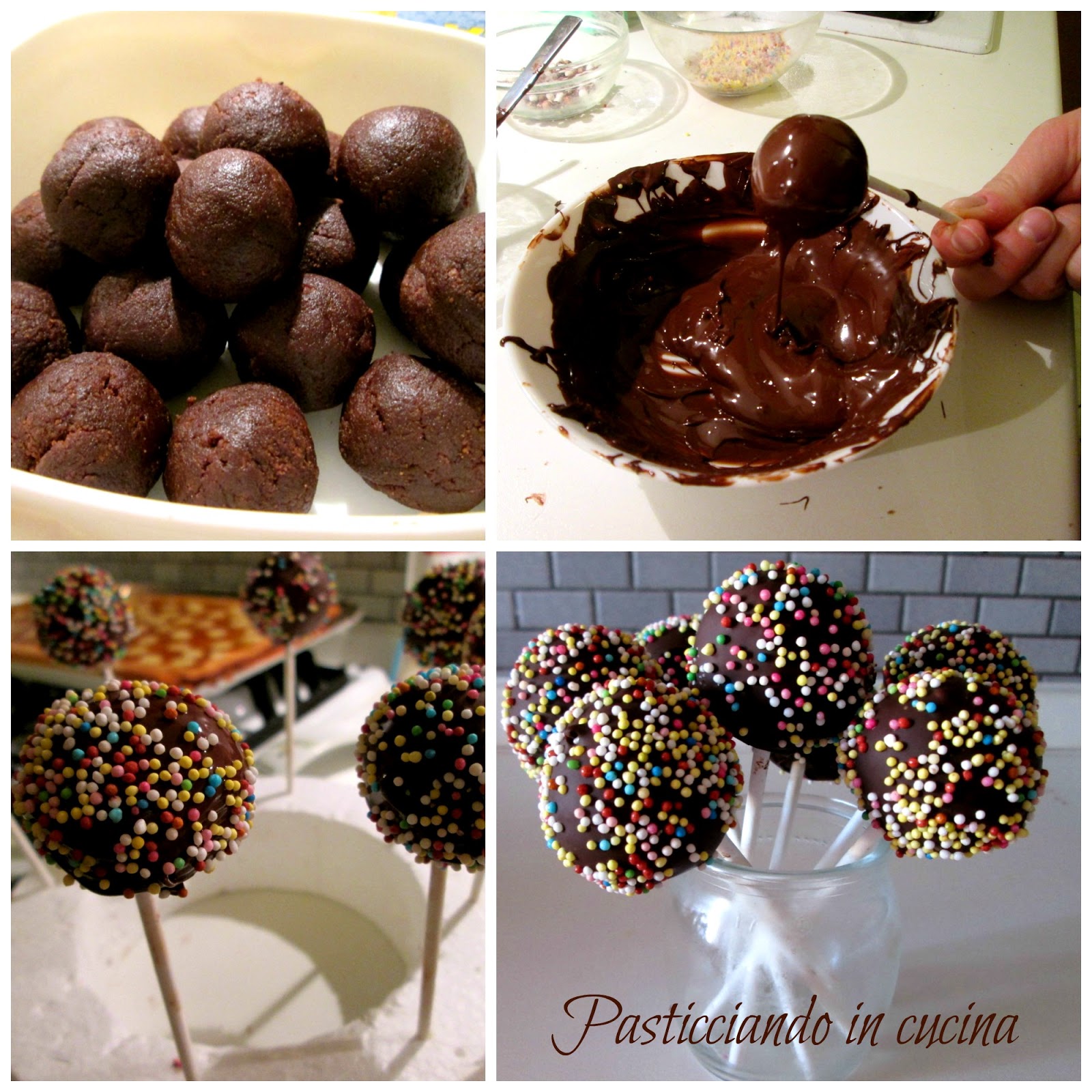 Abbiamo preparato una crostata con la marmellata e dei simpatici cake pops (bocconcini di torta ricoperti di cioccolato fondente e codette di zucchero colorato!)