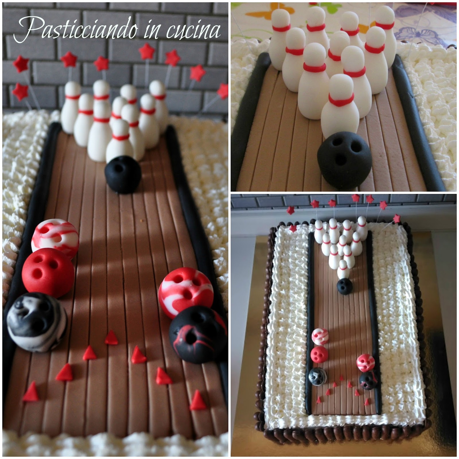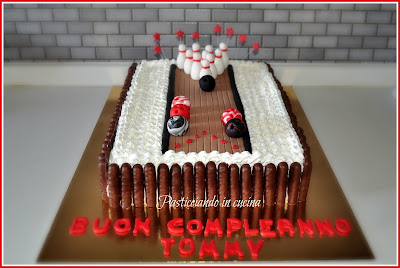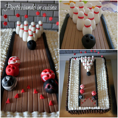 Per l’occasione abbiamo preparato una torta a tema Bowling (visto che ha scelto di festeggiare con i suoi amichetti al Bowling)…