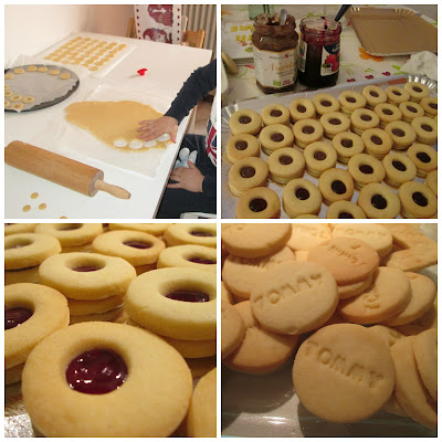Poi ci siamo divertiti a preparare insieme tanti biscottini, sia da regalare agli invitati confezionati in sacchettini trasparenti, e sia da gustare durante la festa.