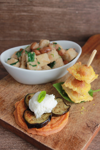 Ravioli fritti ai funghi, zucca e patate