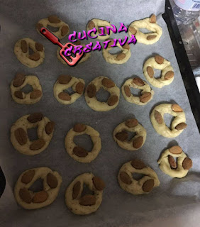 ingredienti x il lievitino 25 gr di lievito di birra 100 ml. di acqua 100 gr di farina ingredienti per l’impasto 500 gr di farina 15 gr di sale 5 gr di pepe 250 gr di sugna 120 gr di mandorle tritate grossolanamente acqua qb. fare il lievitino e lasciare lievitare,nel frattempo sminuzzare le mandorle ora fare l’impasto con tutti gli ingrdienti e lasciare lievitare dopo la lievitazione ho diviso l’impasto in 50 gr l’uno ho steso dei cilindri di 35 cm piegati in due e attorcigliare chiudere a forma di ciambella mettere sulla teglia e lasciare rilievi tare e infornare a 180 fino a doratura eccoli pronti buoni e gustosissimi.
