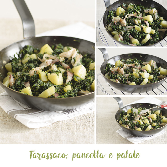 Ottimo l’abbinamento del tarassaco con pancetta e patate… piatto gustoso e veloce come contorno per cena.