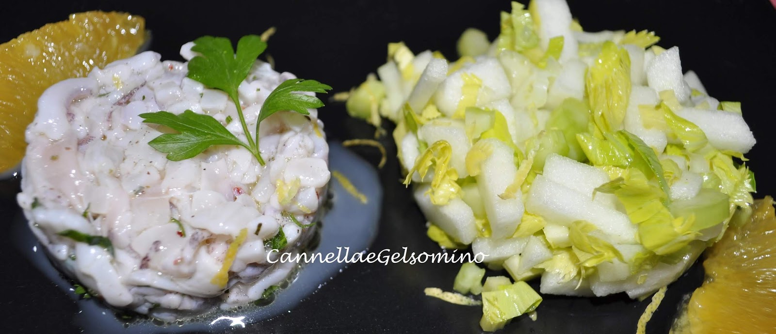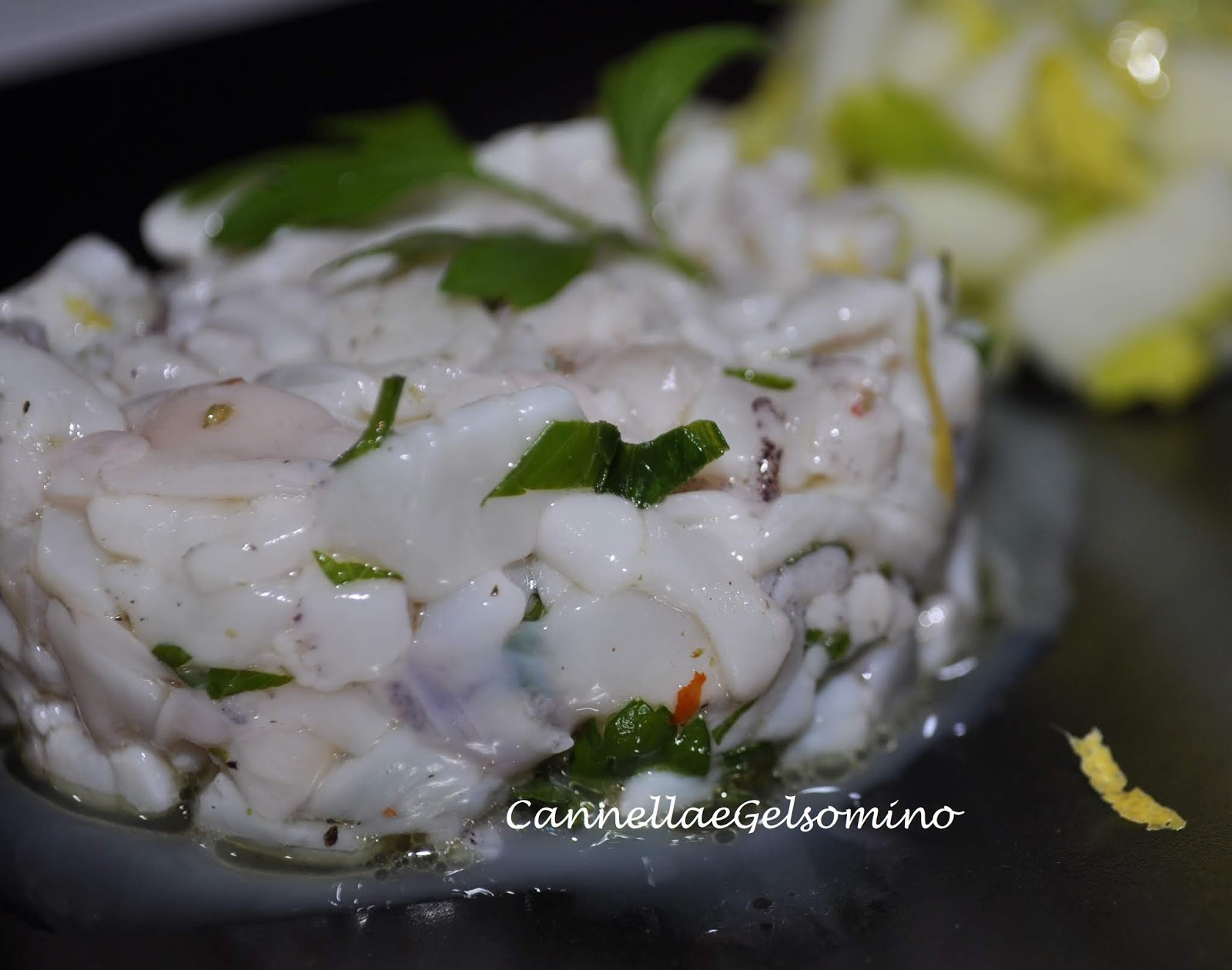 Il piatto di oggi può costituire una entrée in una cena a base di pesce o anche un secondo se abbinato all’insalatina di sedano e mele. E’ molto delicato nel gusto e piacerà a tutti gli amanti del pesce e dei molluschi marinati. Bisogna procurarsi dei calamari piccoli (in quanto più teneri) e freschissimi.