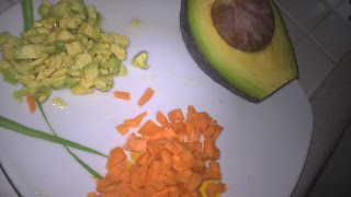 Accompagnatelo con dei dadini di verdure o ortaggi: ho scelto l’avocado e le carote conditi con sale, olio e succo di limone.