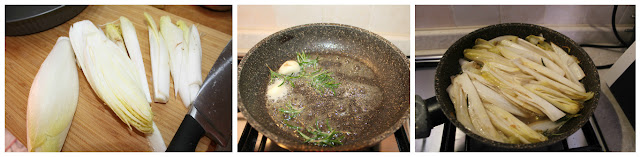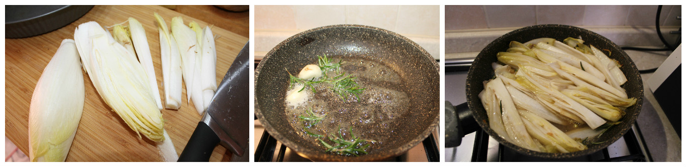 Lavate l’indivia belga, eliminate con un coltello il fondo e le foglie esterne più brutte.