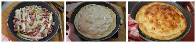 Trasferite la belga appassita, nella teglia e disponetela uniformemente, cospargetela con i cubetti di pancetta e coprite con la pasta sfoglia. Premette bene con le mani per far uscire l’aria e ripiegate il bordo a formare un cordoncino pizzicato con le dita. Con la punta di un coltello praticate qualche foto sulla superficie e spennellate con il latte. Cuocete in forno per 30 minuti, sfornate lasciate intiepidire 5 minuti e con la punta di un coltello staccate delicatamente i bordi della teglia.