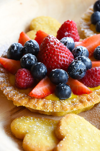 - i frutti che preferite! Se farcite la tartelette subito prima di servirla, potete fare a meno di usare la gelatina per la frutta. Aggiungete solo una piccola spolverata di zucchero a velo e degustate la frutta fresca al naturale. In caso contrario, spruzzate della gelatina sulla frutta e mantenete i dolci in frigorifero e coperti.