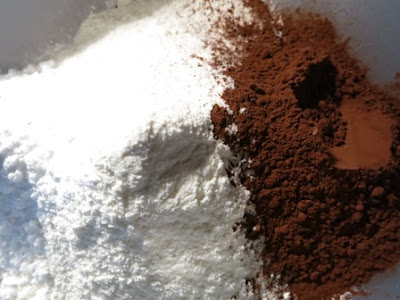 Mescolare la farina con il cacao e lo zucchero a velo..