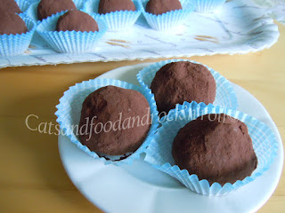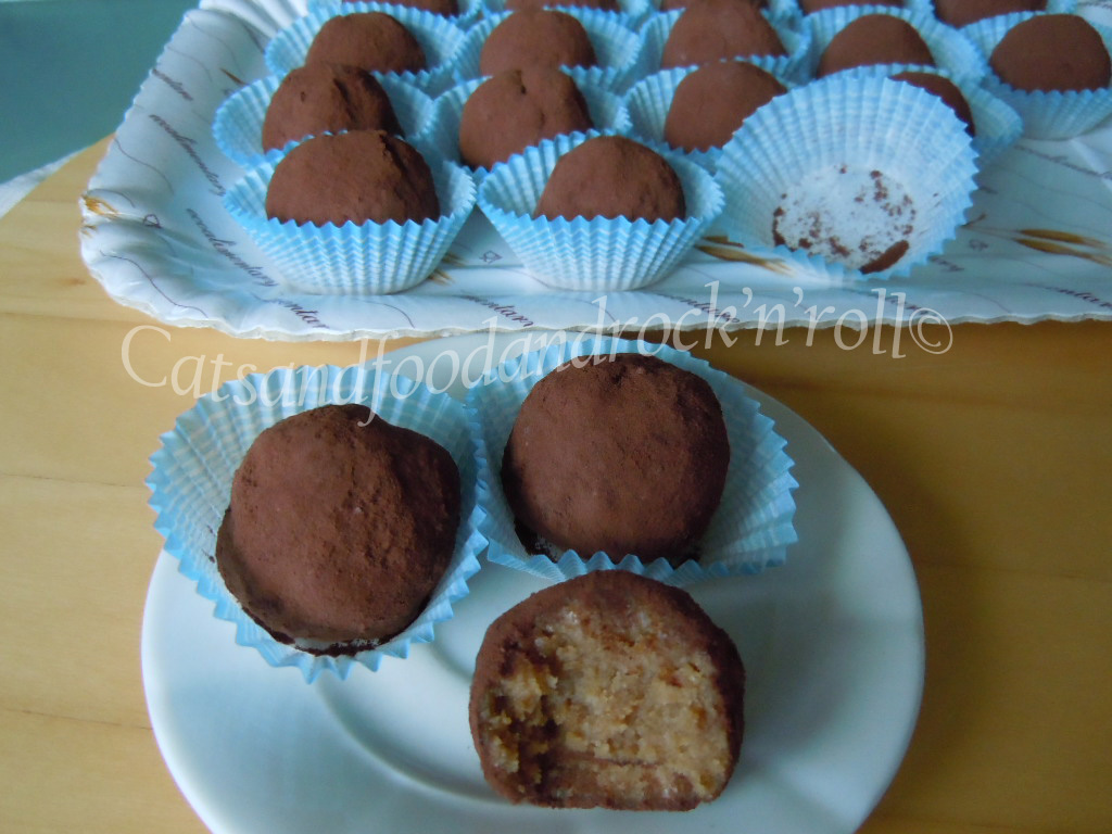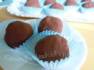 I tempi lunghi di realizzazione dipendono solo dalla necessità di far riposare l’impasto in frigo, una prima volta per poter meglio lavorare le palline, e una seconda volta quando le palline sono formate, per poterle passare meglio nel cacao. Io ho trovato comodo preparare l’impasto la sera in modo da lasciarlo in frigo tutta la notte, riprenderlo la mattina dopo, formare le palline e poi far riposare i tartufini ancora un’oretta. Se si va di fretta, si può agire di freezer.