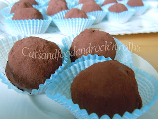 Passarle nel cacao, metterle ognuna in un pirottino di carta e conservare in frigo fino al momento di servirle.