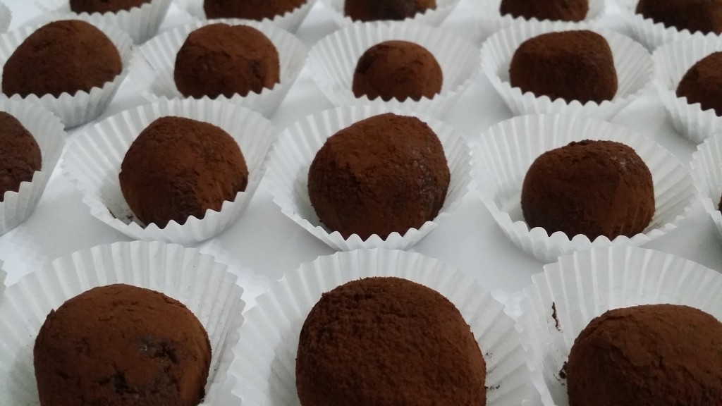 Con l’impasto ottenuto formare tante palline, lasciarle in frigo per almeno 30 minuti, dopo di chè rotolarle nel cacao e disporle in un piatto da portata.