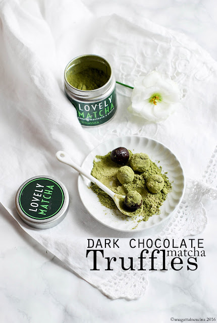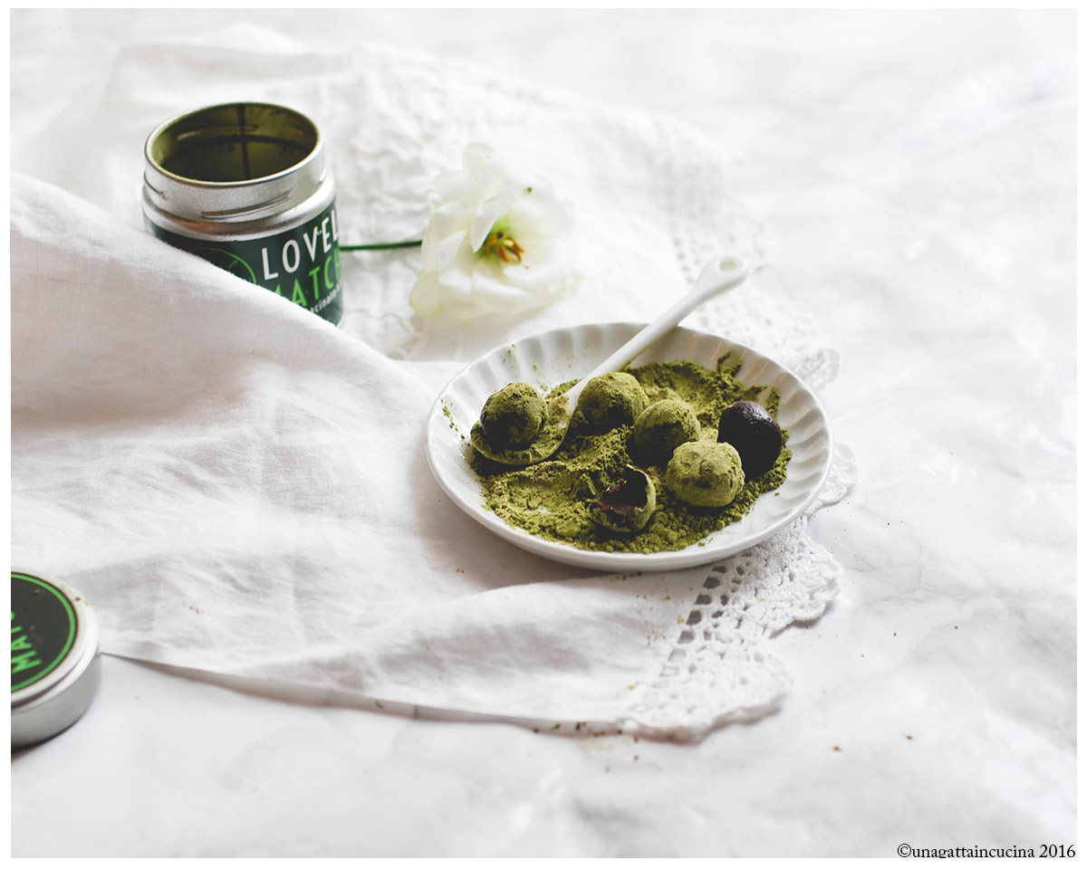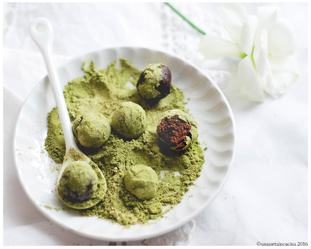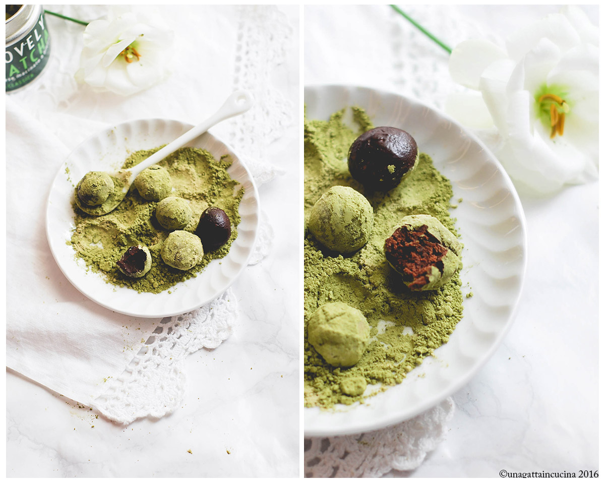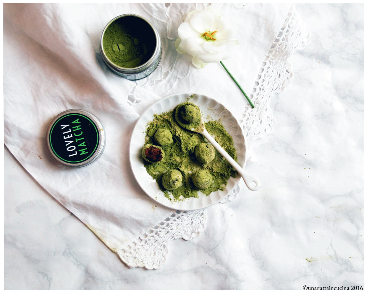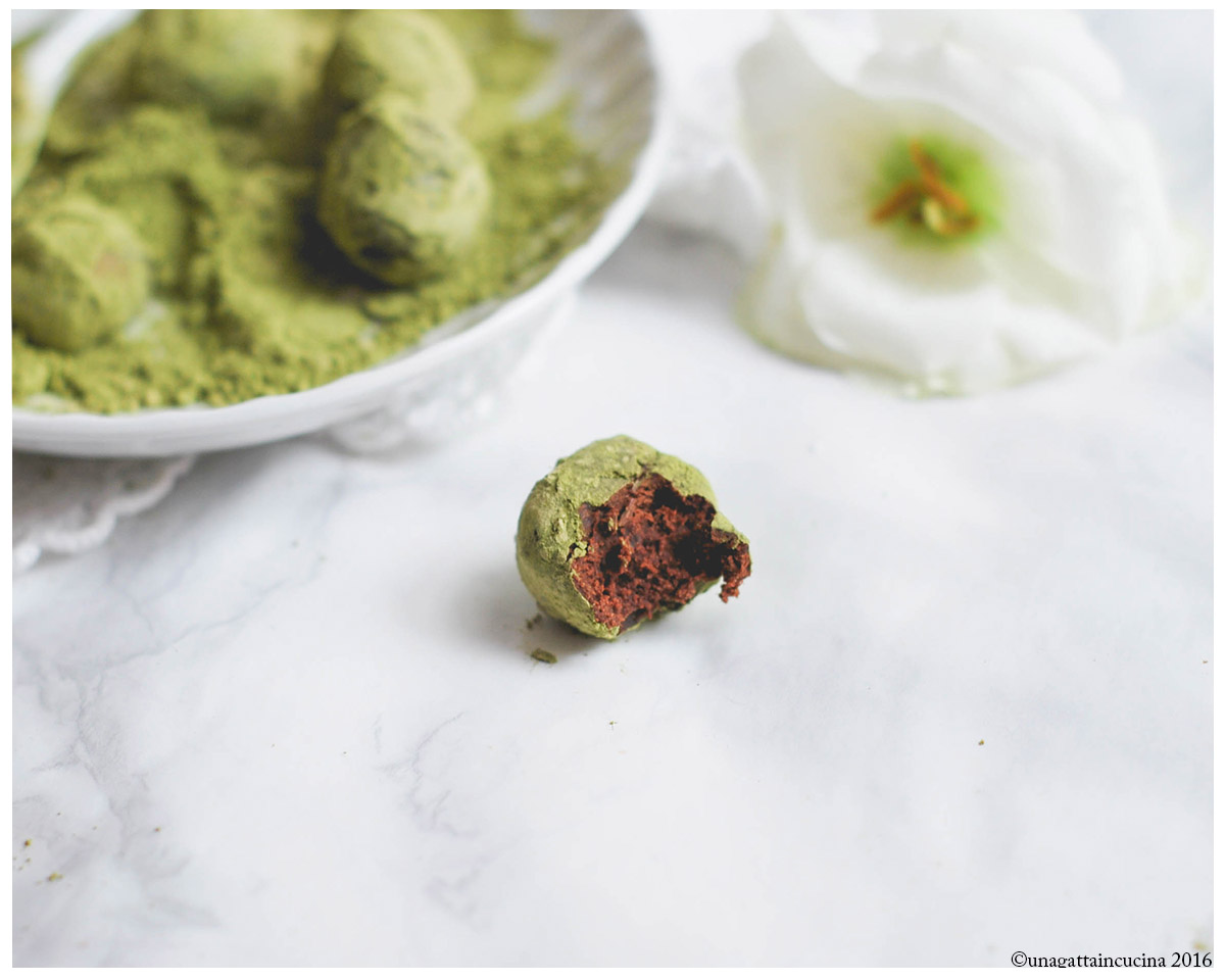 I tartufini al cioccolato fondente e matcha sono un goloso e sano peccato di gola.