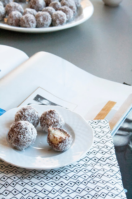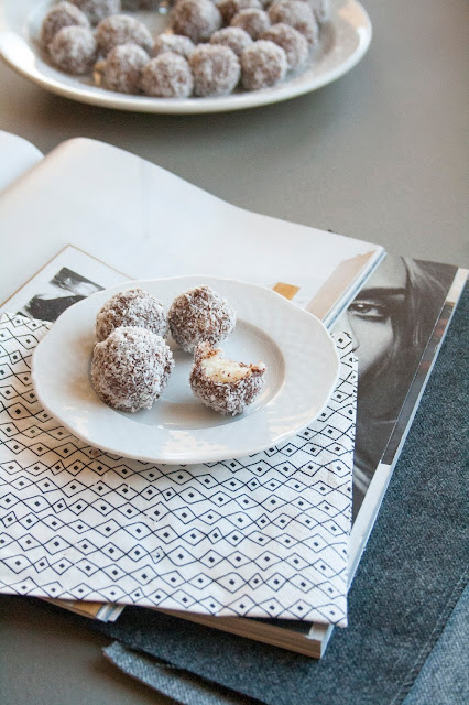 Trasferirle poi in un piatto in cui abbiamo versato 60 gr di farina di cocco e arrotolarli su di essa in maniera che si ricoprano interamente.