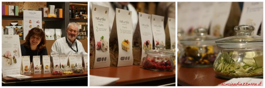 Mi ha incuriosito molto l’azienda “Naturalia” un’azienda agricola familiare di Vercelli dedita alla coltivazione del riso privilegiando la qualità e la naturalità del prodotto. La particolarità che mi ha incuriosito molto è stato l’arricchimento del riso Carnaroli con fiori, erbe e piccoli frutti, rendendo queste delle ricette pronte confezionate. Un’azienda tutta al femminile, guidata dalle sorelle Rosso dopo ben 5 generazioni fiere di coltivare le proprie terre come si faceva una volta. L’abbinamento dei fiori, per esempio, mi diceva la signora, le è stata tramandata dalla nonna ligure che ha saputo consigliarle dando quel tocco raffinato e femminile a risotti locali vercellesi rendendoli particolari e seducenti.