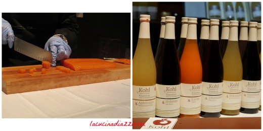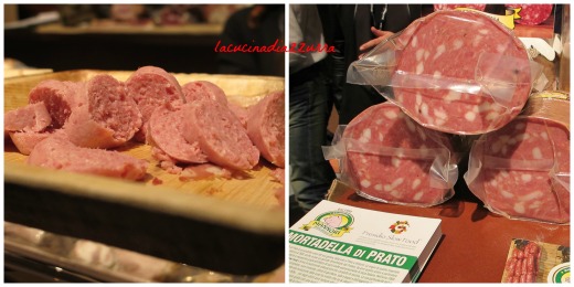 Beh molti di questi produttori che esponevano a Taste la amano, e amano i prodotti che producono, gran parte dei salumi sono privi di additivi e conservanti, come i prodotti di “Mannori” la loro mortadella di Prato presidio Slow Food, ottenuta da animali alimentati con cereali non con OGM. L’artigianalità e il rispetto della tradizione permette di ottenere pasta di ottima qualità come nel caso del “Pastificio dei Campi Gragnano“, la filettatura a mano, la leggera salatura, la lenta maturazione dei filetti, l’asciugatura e la delicata affumicatura a la Ficelle sul fuoco di legno rendono il salmone di “Coda Nera” l’esclusivo sapore del tempo. Sono rimasta colpita dalle bottiglie di “Kohl” un’azienda del Sudtirol produttori di succhi di mela speciali, usando questa come base e variandoli ai gusti dell’Alto Adige, come ai fiori di sambuco, alla menta rotondifolia, al mirtillo nero, alla carota, alla pera per diventare dissetanti aperitivi analcolici dalla freschezza straordinaria. Ho assaggiato il gelato con l’olio, in realtà è un modo per esaltare il gusto di quest’ultimo, perché la freschezza del fiordilatte rende più nitido il sapore di tanta eccellenza. Sono stata poi rapita dal sapore pungente e deciso del Castelmagno, un formaggio prodotto seguendo la tradizione come l’utilizzo delle fascere di legno, la maturazione sotto siero e la stagionatura nelle antiche cantine di pietra come fa l’azienda “La Poiana“. Passeggiando nella nuova aerea il profumo di ricordi antichi mi ha attratta, l’azienda “Caccia e Corte” di Castefiorentino, artigianale, familiare, dove i sughi vengono fatti con 5 lunghe ore di cottura, facendo sudare lentamente il soffritto, questo è ciò che li rende differenti dai prodotti della grande distribuzione e posso garantirvi che si sente!