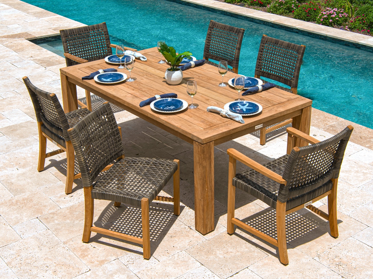 Hampton Driftwood Outdoor Wicker And Solid Teak 7 Pc Dining Set With 79 X 43 In Dining Table