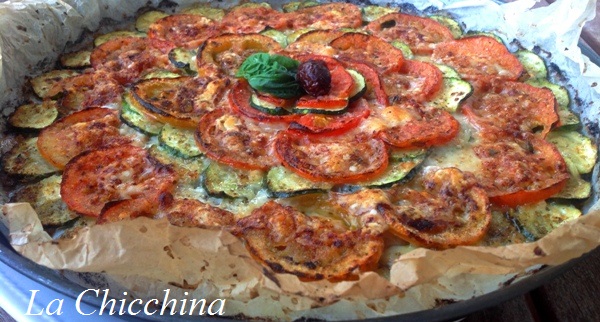 Una ricetta facile, golosa e leggera leggera….oggi mio marito è arrivato con una bella cassettina di zucchine e pomodori freschi freschi dell’orto; era così bella che non ho potuto fare a meno di fotografarla.