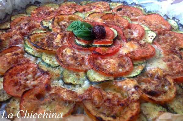 Negli ultimi cinque minuti azionare il grill per avere una crosticina invitante. L’aspetto è magnifico, può ricordare una pizza… mangiare tiepida, sentirete che delizia…grazie di essere passati da me…io sono sempre qui, nella mia cucina. Un bacio, Cristina/Chicchina!