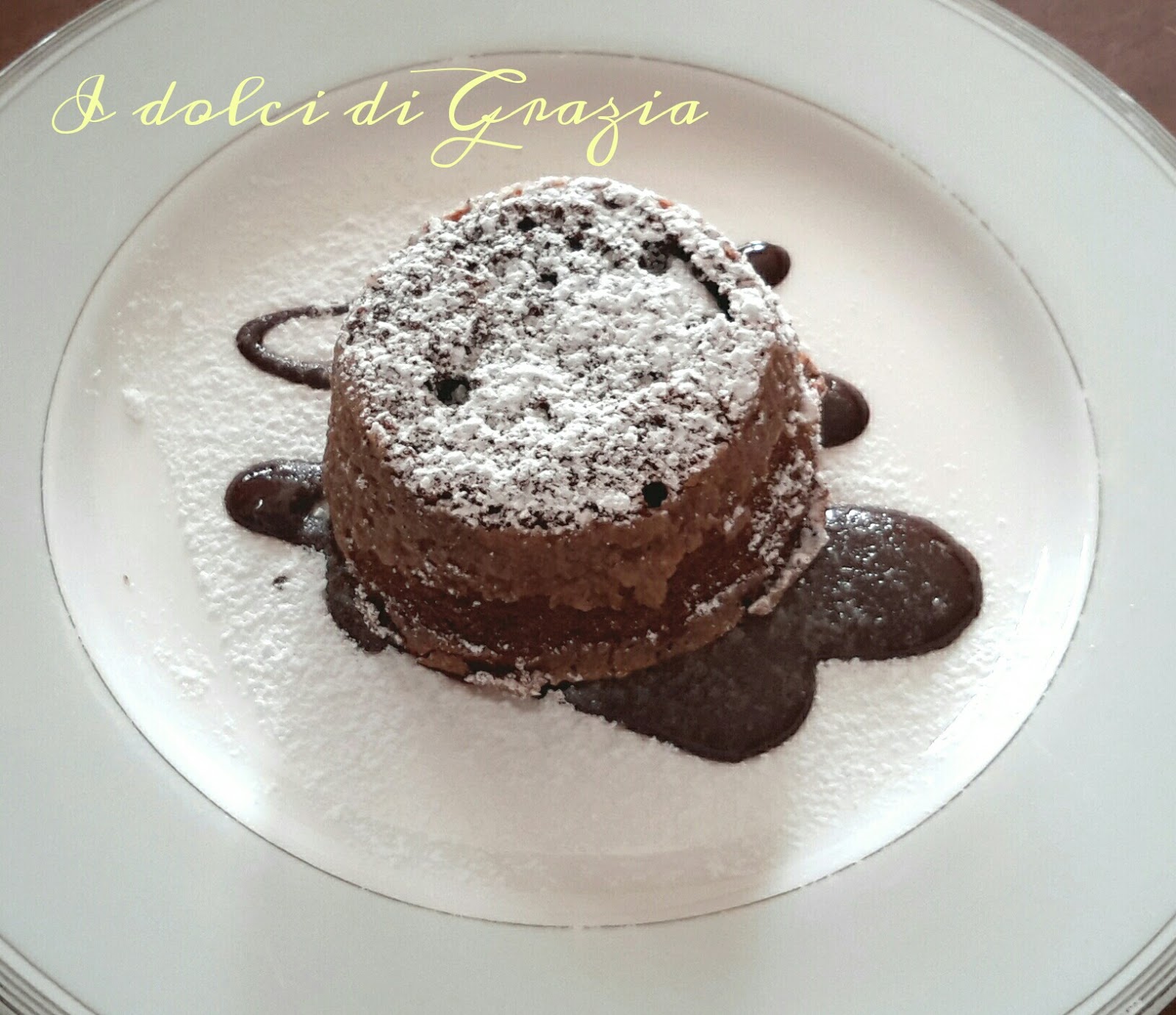 Secondo me la tenerina si gusta meglio da tiepida su una colata di cioccolato fuso nel piatto e decorata con zucchero a velo.