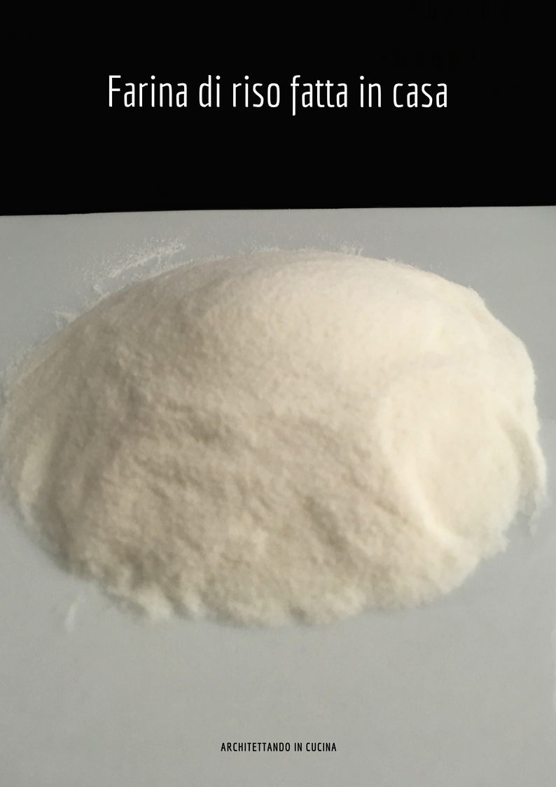 Inserire il riso in un cutter e tritare ad alta velocità. Spegnere, mescolare il riso e ripetere l’operazione per almeno 3 volte. Così si otterrà una farina finissima e pronta all’uso.