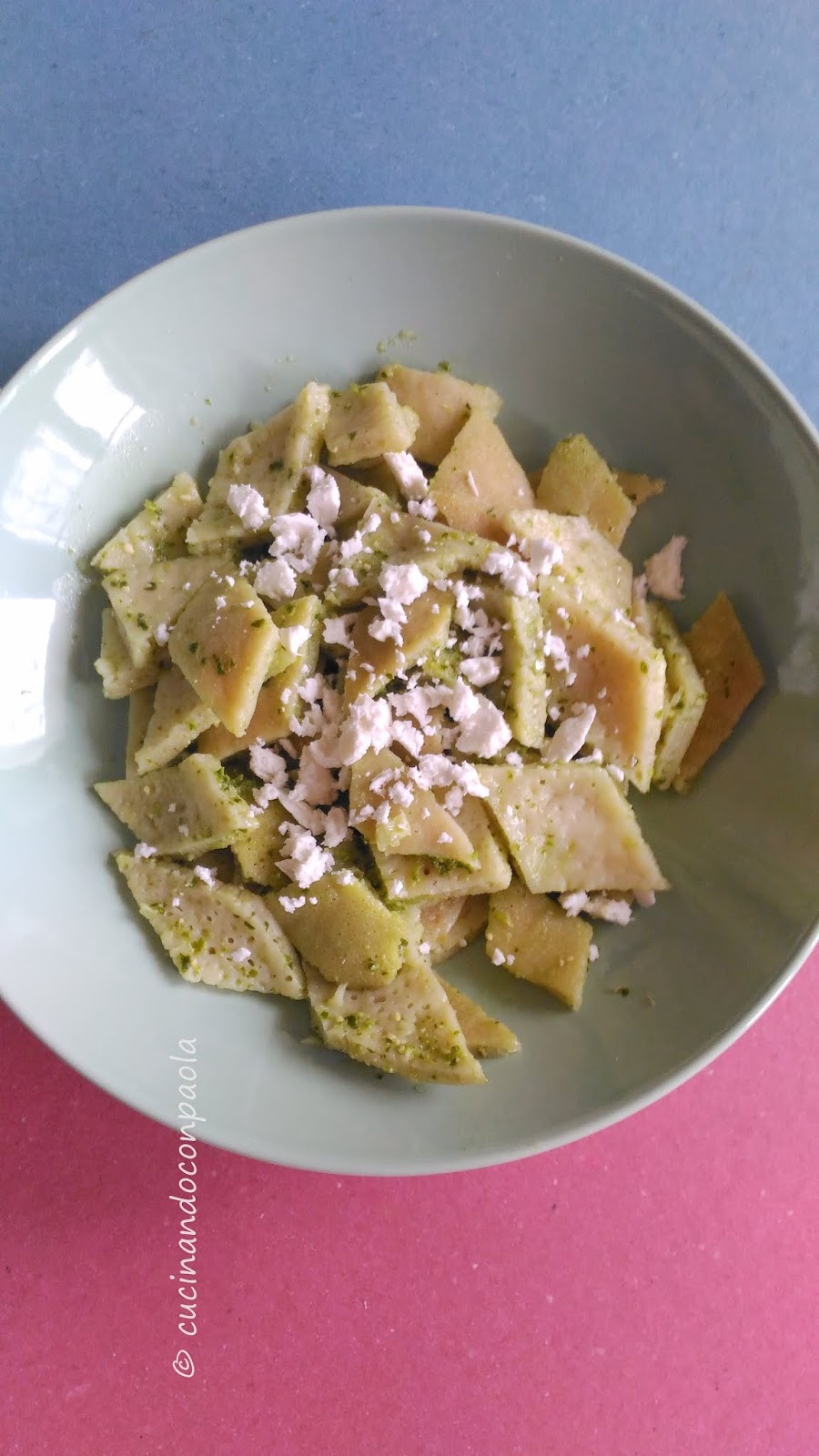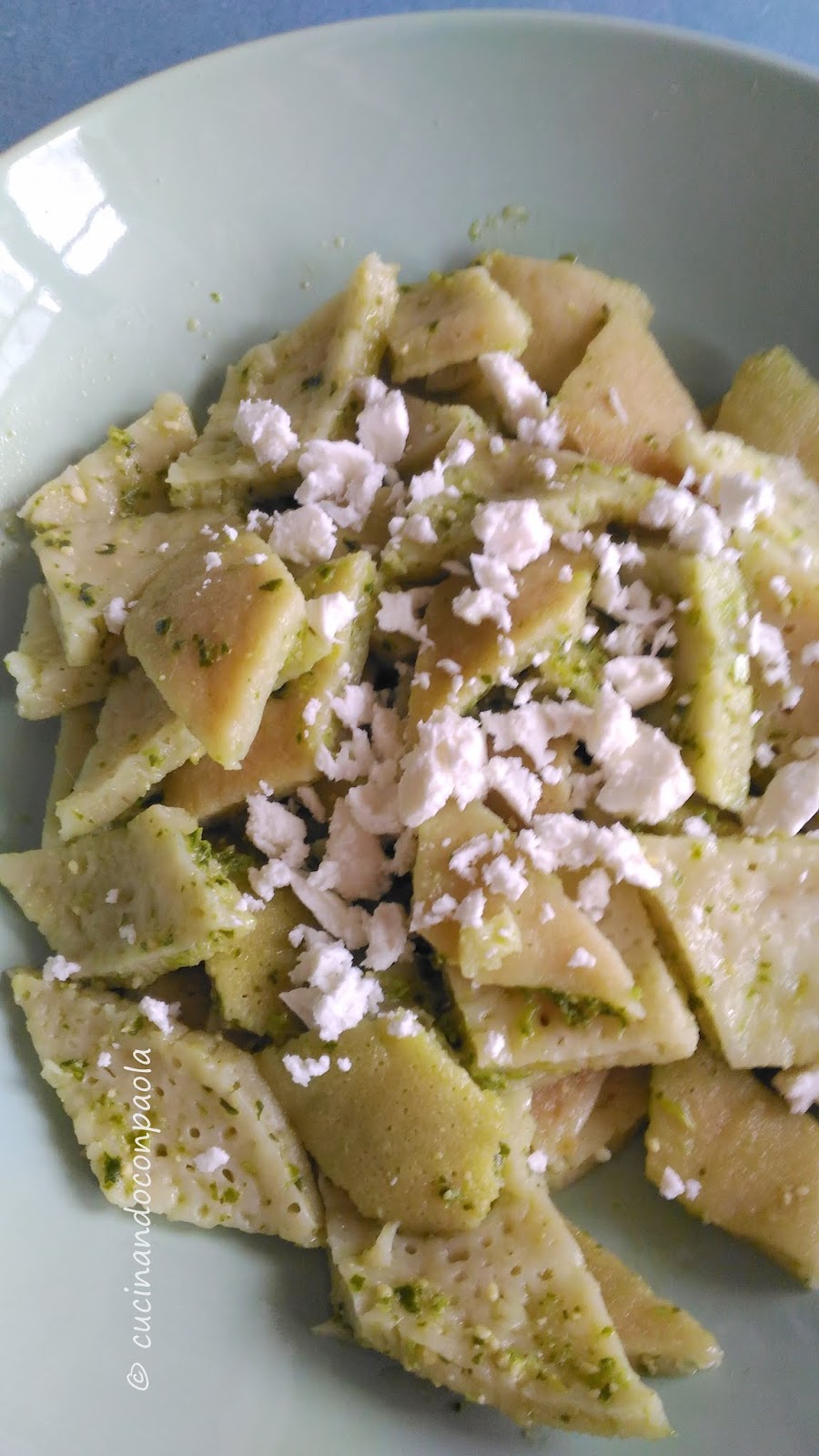 Per prima cosa tagliamo i Testaroli – Acqua Farina & Fantasia a forma di rombi,