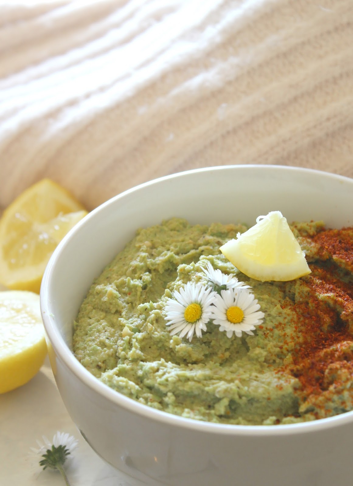 250 g di piselli bolliti – 130 g di ceci cotti – 2 cucchiai di tahina* olio extravergine di oliva – succo di limone – acqua – sale – pepe –zenzero – peperoncino