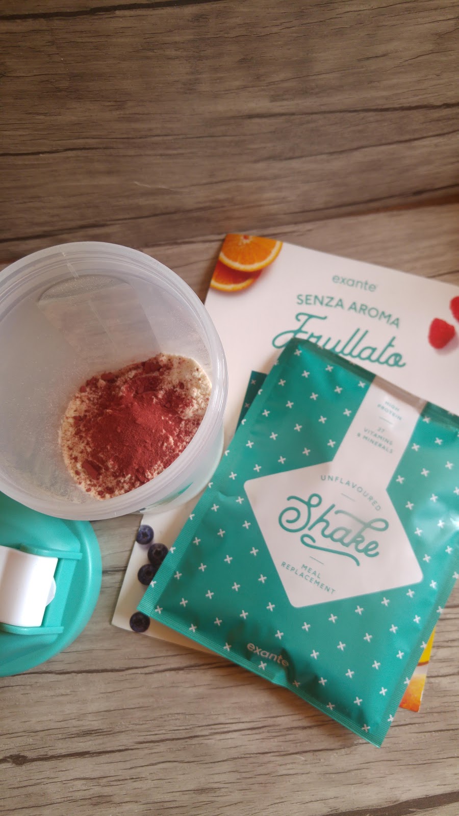 Il caso mi è venuto in aiuto, io nella vita sono un agente di commercio, non ho propriamente degli orari e spessissimo salto il pasto perchè non ho voglia di mangiare qualcosa al volo al bar, andare tutti i giorni in Trattoria o nei fast food, è sbagliato lo so ma faccio così…fino a che avevo con me in borsa la busta del nuovo prodotto di Exante il frullato senza aroma che puoi mixare a tuo piacimento con vari ingredienti, il pratico bicchiere preparatore e ho sempre con me una bottiglietta di acqua, cambio di programma mi ritrovo a dover saltare ancora una volta il pasto, ma avevo fame ho guardato in borsa e ho detto ma perchè no? ho letto le istruzioni, aggiunto a mio gusto personale 250 ml di acqua anzichè 200 ml perchè lo preferisco più liquido, (non ridete) avevo con me un vasetto con della barbabietola in polvere da portare a mia mamma, di cui ho aggiunto un paio di pizzichi, ho shakerato, ho ovviamente bevuto tutto e mi sono stupida perchè non ho: