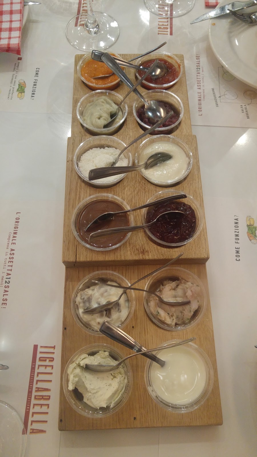 L’Assetta12Salse vede schierare come accompagnamento ai taglieri 8 condimenti salati e 4 dolci, par dare libero sfogo alla creatività nella degustazione delle possibili combinazioni: dai formaggi, come lo squacquerone, l’erborinato cremoso, il cuore di gorgonzola, alle elaborazioni più articolate come il battuto di lardo o le salse della casa, ovvero radicchio, messicana e zingara; per chiudere in dolcezza, invece, compaiono una crema di cioccolato bianco, nutella, marmellata di fragole e scaglie di cocco. Per i palati più curiosi, oltre ai menu classici, è possibile scegliere altre 8 salse e un menu gourmet con prosciutto di Parma dop 24 mesi, burratina affumicata e carpaccio di bufala ottenuto utilizzando la fesa di punta d’anca. Tigellabella, nata nel 2004 e protagonista negli ultimi anni di oltre 30 aperture in tutta Italia, ha ideato la “no limits dinner” come omaggio alla città di Milano, che ospita per la prima volta un locale della catena. Il ristorante in via Cadore presenta anche un nuovo design, caldo e accogliente, studiato per far sentire a casa utenti di ogni età e tipologia, senza dimenticare chi ama scattare una foto ai piatti o all’ambiente prima di mettere mano a tigelle e farciture.