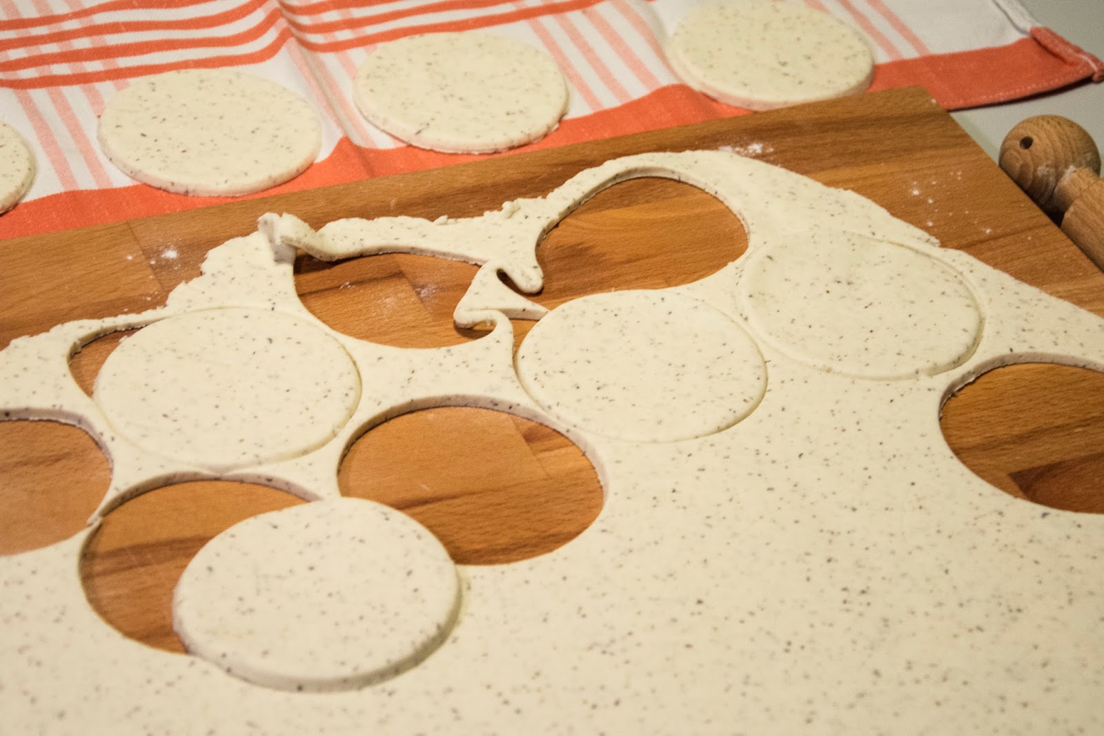 ritagliare tanti dischetti impastando tutti i ritagli e stendendoli nuovamente