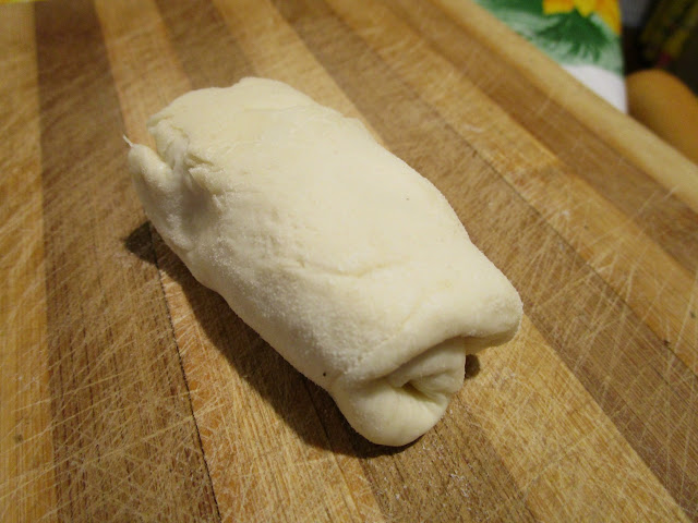 - ogni pallina deve essere, lievemente allungata e arrotolata su se stessa, girarla, allungarla nuovamente e arrotolarla, nell’altro verso (vedi foto), in questo modo faremo le pieghe
